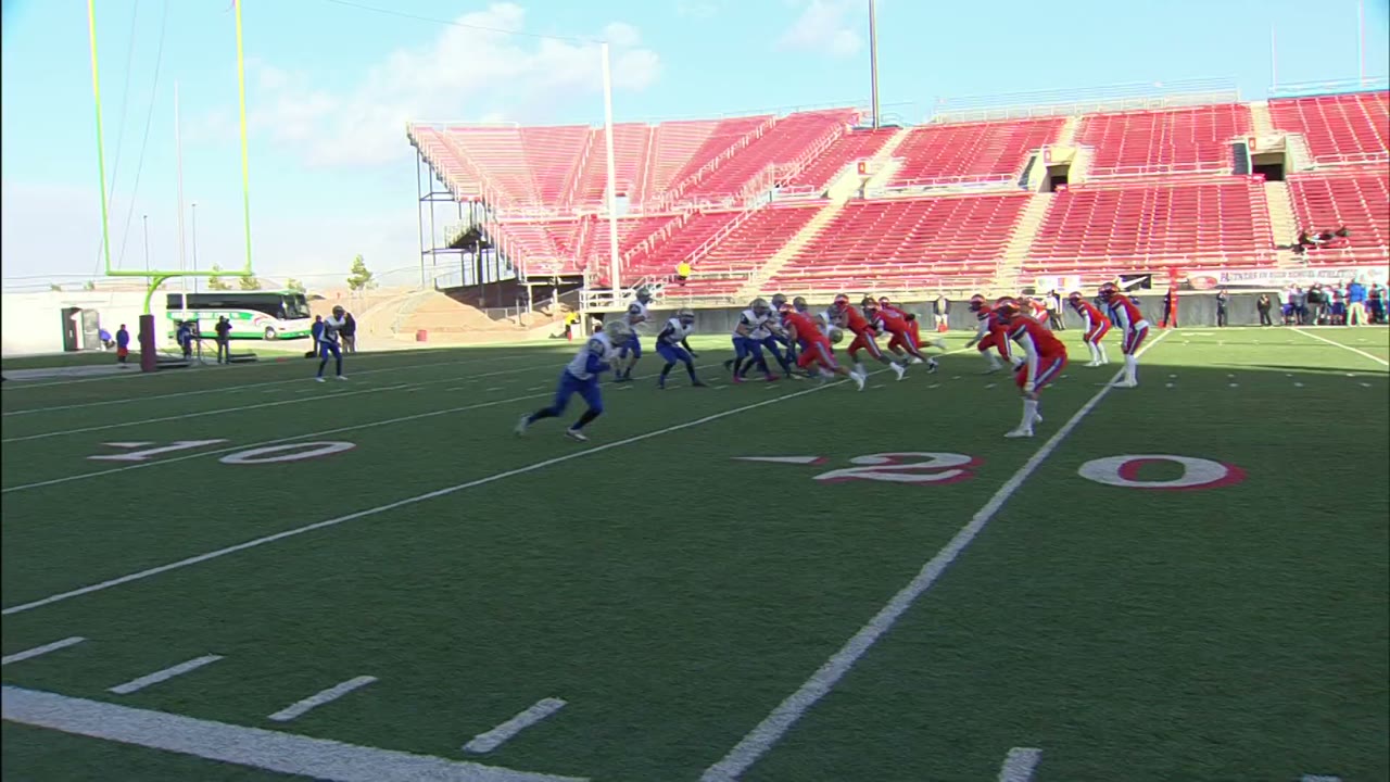 As I sit in the press box, taking a break from documenting the HBU cast, my attention is drawn to the football game unfolding on the field below. The atmosphere is electric, with the crowd of spectators filling the stands and creating an almost tangible buzz of anticipation. The weather is crisp and cool, suggesting that it's late fall or early winter, the perfect time for a high school football championship game.