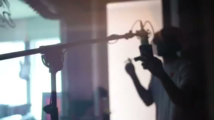 Inside the studio, Dirk Jackson is in the middle of a performance. He's running around the room, fully immersed in the song. The mood in the studio is one of excitement and anticipation. You can see it on everyone's faces as they watch him perform.