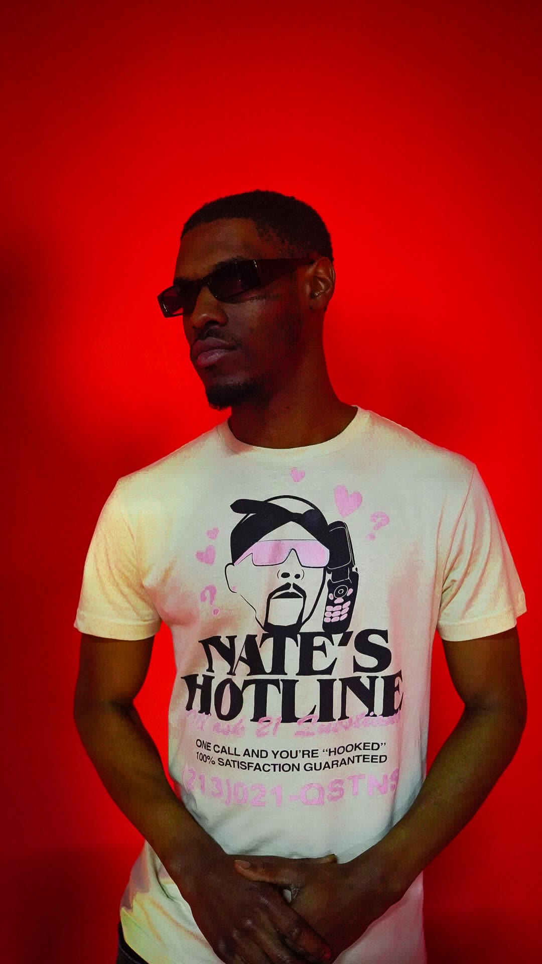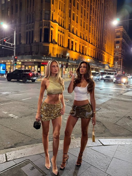 AI vision: The image shows a split screen with two different photos of people standing in front of neon signs with vibrant colors, possibly indicating a nightlife setting. On the left side, there's an individual wearing a white t-shirt and jeans, leaning against what seems to be a wall or partition. On the right side, another person is captured in profile, holding a cell phone and posing for the photo. The overall mood of the image appears to be casual and relaxed, with a focus on the individuals' attire and the lively atmosphere suggested by the neon signs.