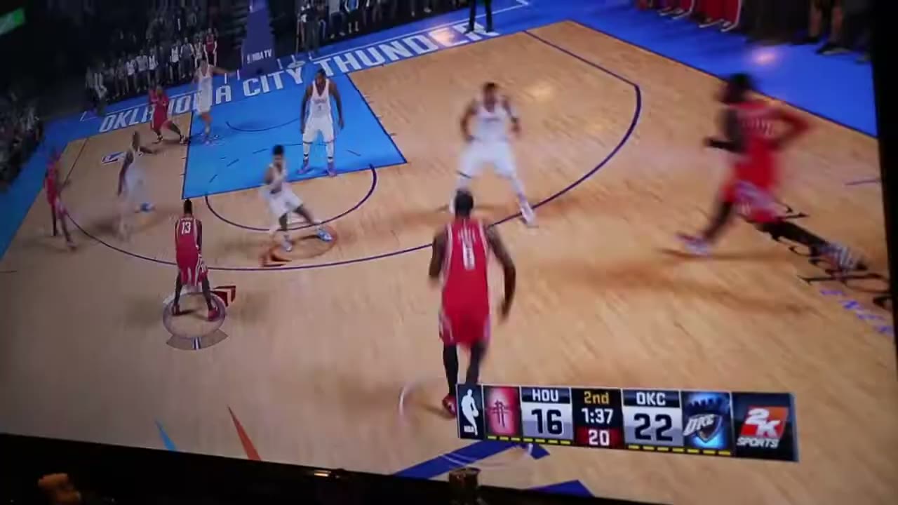 Harden has a wide open look.